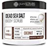 pureSCRUBS Premium Organic Body Scrub Set - Large 16oz COCONUT BODY SCRUB - Dead Sea Salt Infused Organic Essential Oils & Nutrients INCLUDES Wooden Spoon, Loofah & Mini Organic Exfoliating Bar Soap